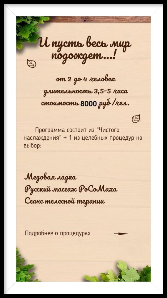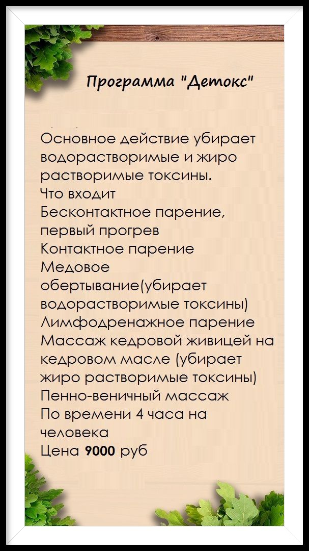 ВОЗРОЖДЕНИЕ ЖИЗНЕННЫХ СИЛ (наша фирменная программа включает проживание, питание, процедуры для тела с баней), есть два места