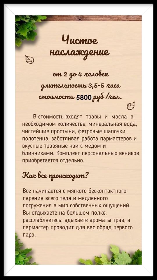 Стоимость проживания с питанием для одного человека в сутки. Банные процедуры оплачиваются отдельно.